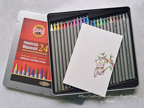 Če se vam po barvanju z akvarelnimi barvicami zdi motiv premalo kontrasten, lahko naredite tako kot jaz in uporabite še suhe barvice in poudarite tiste dele, katere želite. Pri tem pa mora biti motiv suh od barvanja z akvarelnim medijem.